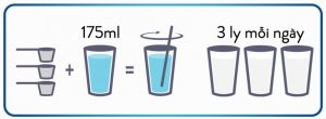 Pha 180 g bột Abbott GROW GOLD 3+ với 875 ml nước để được 1 lít hoặc 3 muỗng gạt ngang (36 g) bột với 175 ml nước để được 1 ly 200 ml.