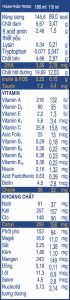 BẢNG THÀNH PHẦN DINH DƯỠNG