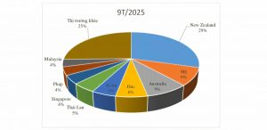 Biểu đồ 3: Cơ cấu thị trường xuất khẩu sữa theo kim ngạch 9 tháng năm 2025