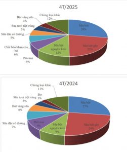 Trong 4 tháng đầu năm 2025, kim ngạch nhập khẩu một số mặt hàng sữa và sản phẩm từ sữa chính đều tăng so với cùng kỳ năm 2024.