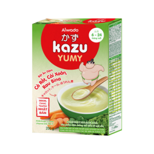 Bột ăn dặm Kazu Yumy (sản phẩm của Công ty xổ phần thực phẩm Aiwado) – Sản phẩm dinh dưỡng chế biến từ ngũ cốc dành cho trẻ trên 4 tháng tuổi với nền tảng tinh tuý dưỡng chất Nhật Bản như Lợi khuẩn Nhật Bản, Canxi Nhật Bản, Taurine Nhật Bản và các siêu thực phẩm như Khoai lang giống Nhật, Bí ngô, Cà rốt, Cải xoăn, Rau bina, Yến mạch tạo ra hương vị tự nhiên, thơm ngon tuyệt đỉnh giúp trẻ phát triển toàn diện, tiêu hoá tốt và tăng cân chuẩn, cao lớn hơn và thông minh hơn.