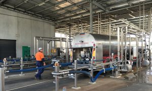 Hệ thống bơm khép kín đanghút sữa từ xe bồn đưavào dây chuyền xử lý và đóng gói của nhà máy sữa, nhập về Việt Nam qua IDP. Ảnh: P.A.