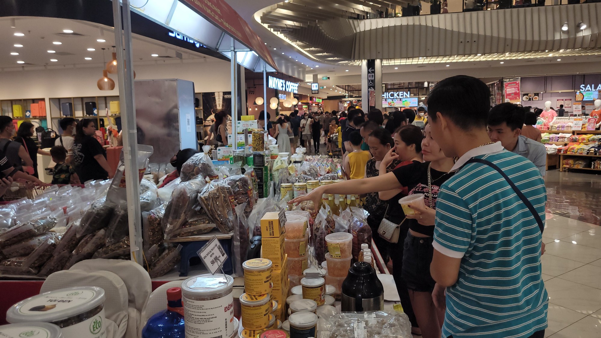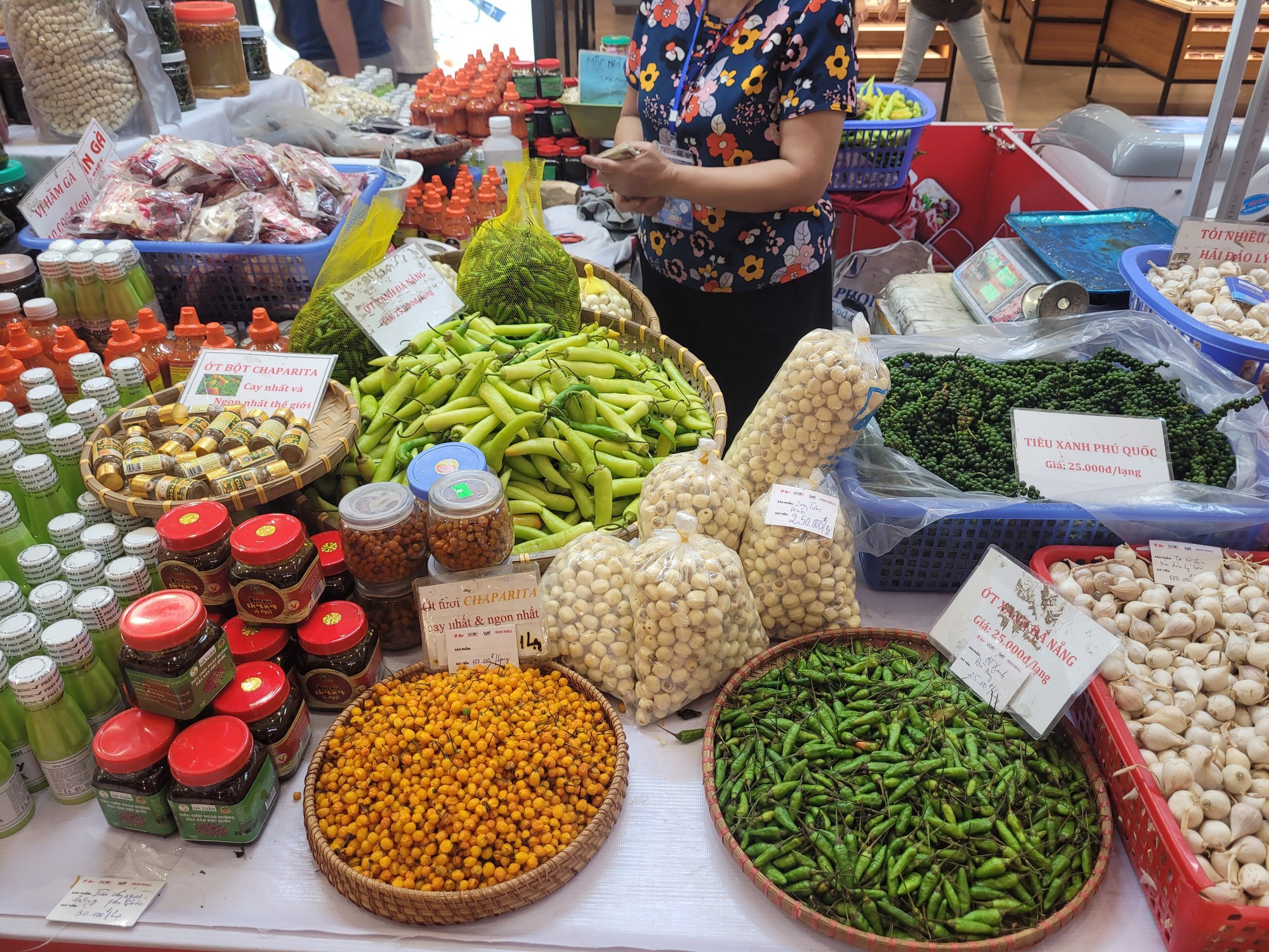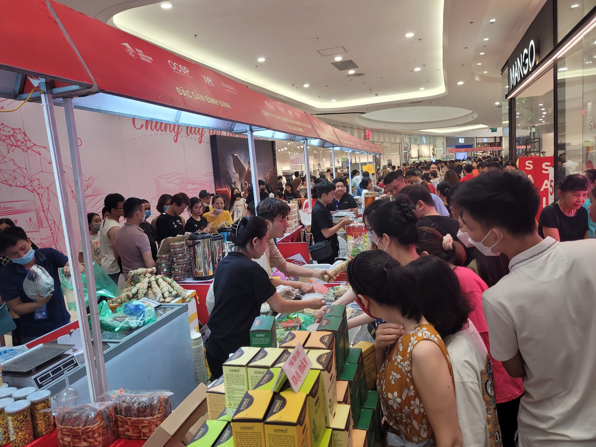 Tại các gian hàng, không khí mua sắm vô cùng nhộn nhịp. Hơn 1000 sản phẩm nông sản, chế biến, các sản phẩm OCOP được chứng nhận từ 3 đến 5 sao; sản phẩm thủ công mỹ nghệ, làng nghề truyền thống tiêu biểu có tiềm năng xuất khẩu, như: Đông trùng hạ thảo, trà các loại, các sản phẩm về sữa, tổ yến, miến, mỳ, cà phê, gia vị, đồ khô, giò bê, trầm hương, mật ong… đã thu hút người tiêu dùng.