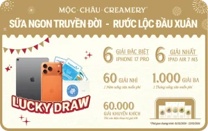Mỗi độ xuân về, người Việt lại mong chờ những điều may mắn, những khởi đầu mới mẻ. Trong không khí ấy, Mộc Châu Creamery mang đến một chương trình khuyến mãi đặc biệt mang tên “Sữa ngon truyền đời – Rước lộc đầu xuân”.