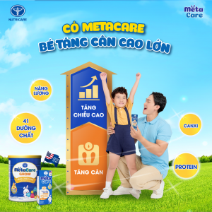 Với sữa Metacare mới, hành trình chăm con lớn khỏe của mẹ luôn có người bạn đồng hành đáng tin cậy khi con không ngừng được bổ sung bởi nguồn dưỡng chất phong phú, chọn lọc mỗi ngày. Metacare xua tan mọi nỗi lo về chiều cao, cân nặng hay miễn dịch, để con lớn đạt mong muốn của mẹ.