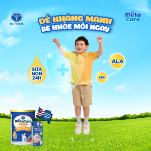Thấu hiểu mong muốn của các bà mẹ, sữa Metacare cải tiến với sự bổ sung sữa non 24h được nhập khẩu 100% từ Mỹ giàu kháng thể cùng kẽm và dưỡng chất ALA tạo nên “áo giáp đề kháng” vượt trội cho con. Từ đó, con đánh bay mọi tác nhân gây hại, không còn ốm vặt, kiên cường, mạnh mẽ để lớn khỏe mỗi ngày.