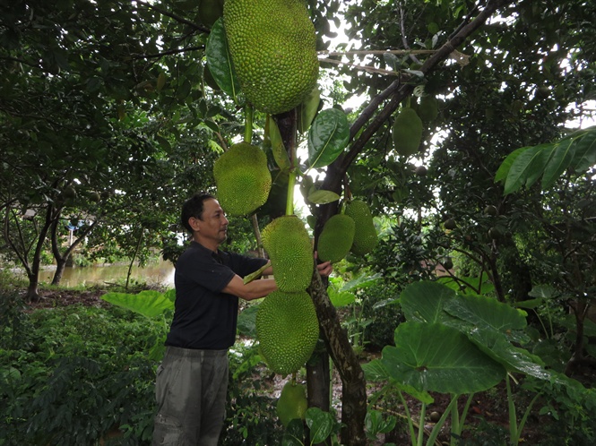 | “Trên vườn dưới cá”, quanh ao trồng chuối tây, cỏ voi. Trong vườn có mít, cam, bưởi. Đặc biệt, ông đầu tư có bài bản nuôi bò sữa. Hiện trong chuồng có 8 con bò sữa đang thời kỳ khai thác (cho sữa) và 1 con bê.