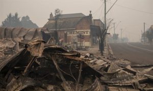 Các tòa nhà bị phá hủy trong trận cháy lịch sử ở Cobargo, bang New South Wales, Úc. Ảnh: AFP.