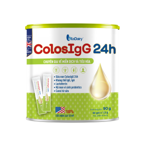 ColosIgG 24h là sữa non được thu trong vòng 24h đầu tiên sau sinh của bò, chứa hàm lượng kháng thể IgG tự nhiên cao nhất (gấp 2 lần so với sữa non 48h, gấp 3 lần so với sữa non 72h, và cao gấp 100 lần so với sữa trưởng thành) giúp tăng cường cường miễn dịch hiệu quả. Kháng thể IgG trong sữa non là một thành phần của hệ miễn dịch có khả năng tiêu diệt trực tiếp các yếu tố gây bệnh như virus, vi khuẩn, giúp tăng cường miễn dịch và phòng nhiễm khuẩn hô hấp, tiêu hoá một cách hiệu quả.